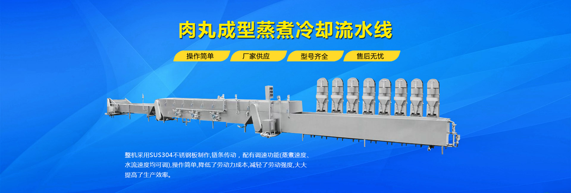 公司主要生產(chǎn)不銹鋼制品食品機(jī)械:各種規(guī)格型號(hào)真空滾揉機(jī)、制冷滾揉機(jī)、提升機(jī)、電加熱夾層鍋、肉丸機(jī)、真空攪拌機(jī)、絞肉機(jī)、灌腸機(jī)、打卡機(jī)、線扎機(jī)、斬拌機(jī)、鹽水注射機(jī)、煙熏爐、油炸機(jī)、巴氏殺菌線、連續(xù)油炸線、肉丸成型水煮線、醬鹵生產(chǎn)線、肉丸破碎機(jī)、真空包裝機(jī)、洗袋風(fēng)干機(jī)、豬頭劈半機(jī)、不銹鋼火腿模具、肉斗車(chē)、案桌、煙熏車(chē)、屠宰類(lèi)機(jī)械設(shè)備、清洗風(fēng)干設(shè)備、肉類(lèi)解凍設(shè)備、滾筒拌料機(jī)等。產(chǎn)品廣泛適用于火腿腸、肉丸、肉串、鹵制品、海產(chǎn)品、禽類(lèi)深加工、油炸、泡椒風(fēng)味、速凍水餃、魚(yú)豆腐、千葉豆腐、豆腐干、牛肉干、牛排雞排類(lèi)、禽蛋、麻辣、休閑、水果蔬菜清洗、中央廚房、餐飲連鎖、寵物食品等食品生產(chǎn)。